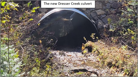 Thanks to a national keystone agreement between the USDA Forest Service and Trout Unlimited, the project was finally able to move forward with funding from the Bipartisan Infrastructure Law and Inflation Reduction Act. The new funding agreement made it possible for the existing Dresser Creek culvert to be replaced with a larger squashed steel structure.