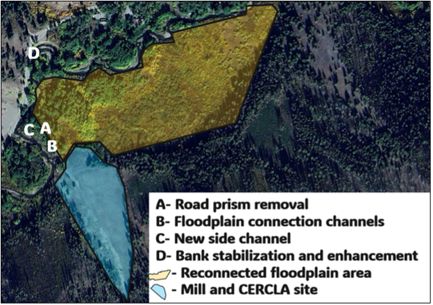 To ensure the detected contaminants did not spread over time, the Forest Service completed a Comprehensive Environmental Response, Compensation and Liability Act (CERCLA) removal action in November 2004. As a result, the mill buildings, ore processing equipment and 30,000 cubic yards of tailings in the impoundment area and 7,600 cubic yards of tailings in the riparian area were removed in the following years. Once the CERCLA removal action was completed the bridge over Warm Springs Creek was also removed.